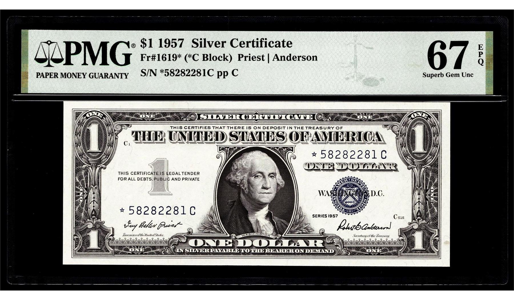1957 $1 Silver Certificate Star Note Fr.1619* PMG Superb Gem Uncirculated 67EPQ