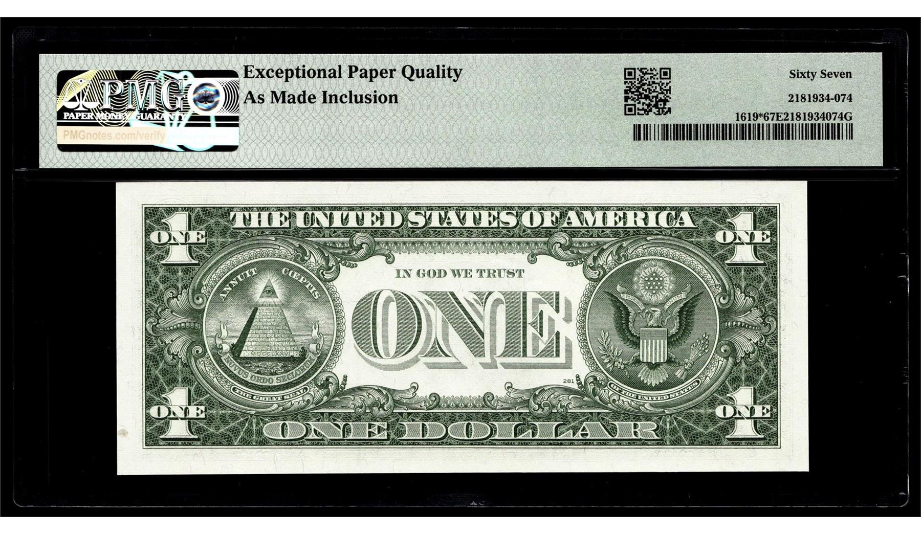 One 1957 $1 Silver Certificate Star Note Fr.1619* PMG Superb Gem Uncirculated 67EPQ. PMG Certified.