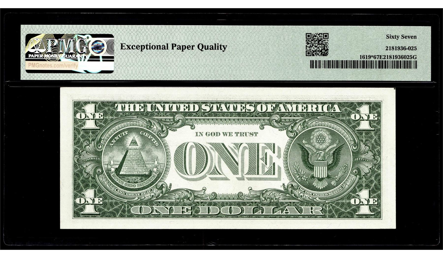One 1957 $1 Silver Certificate Star Note Fr.1619* PMG Superb Gem Uncirculated 67EPQ. PMG Certified.