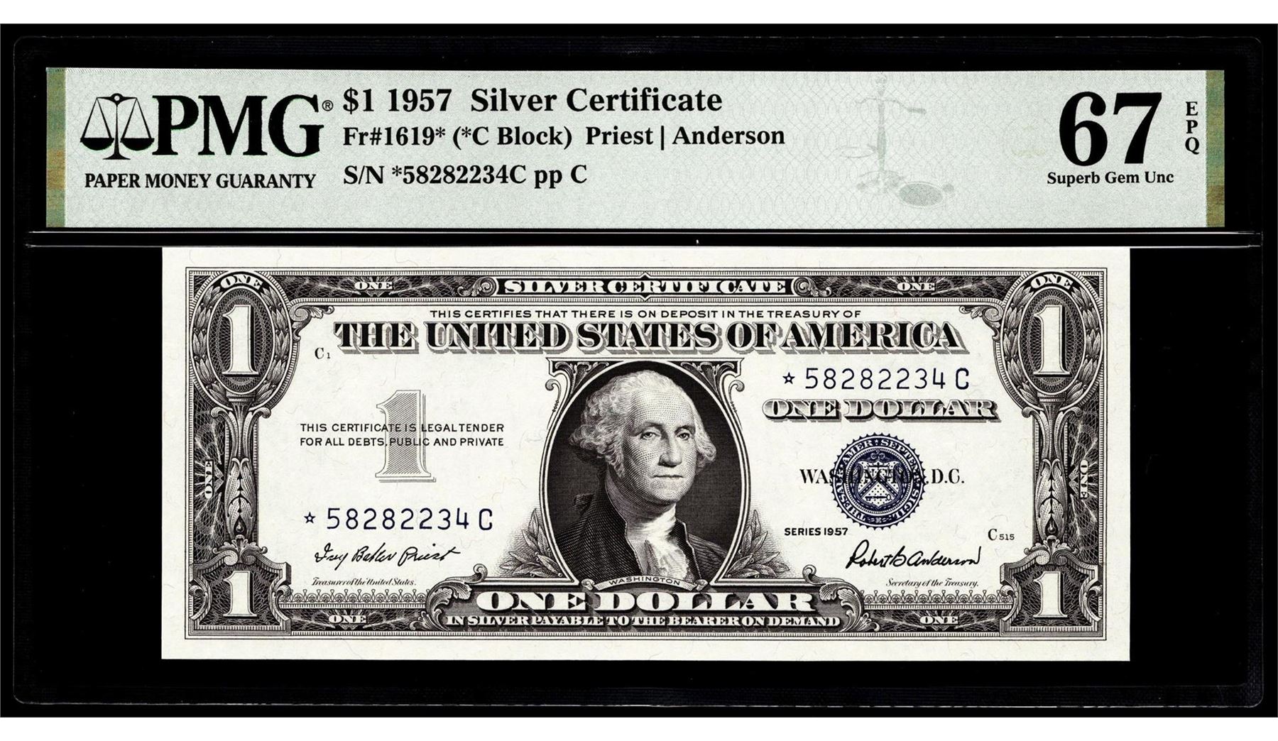 1957 $1 Silver Certificate Star Note Fr.1619* PMG Superb Gem Uncirculated 67EPQ