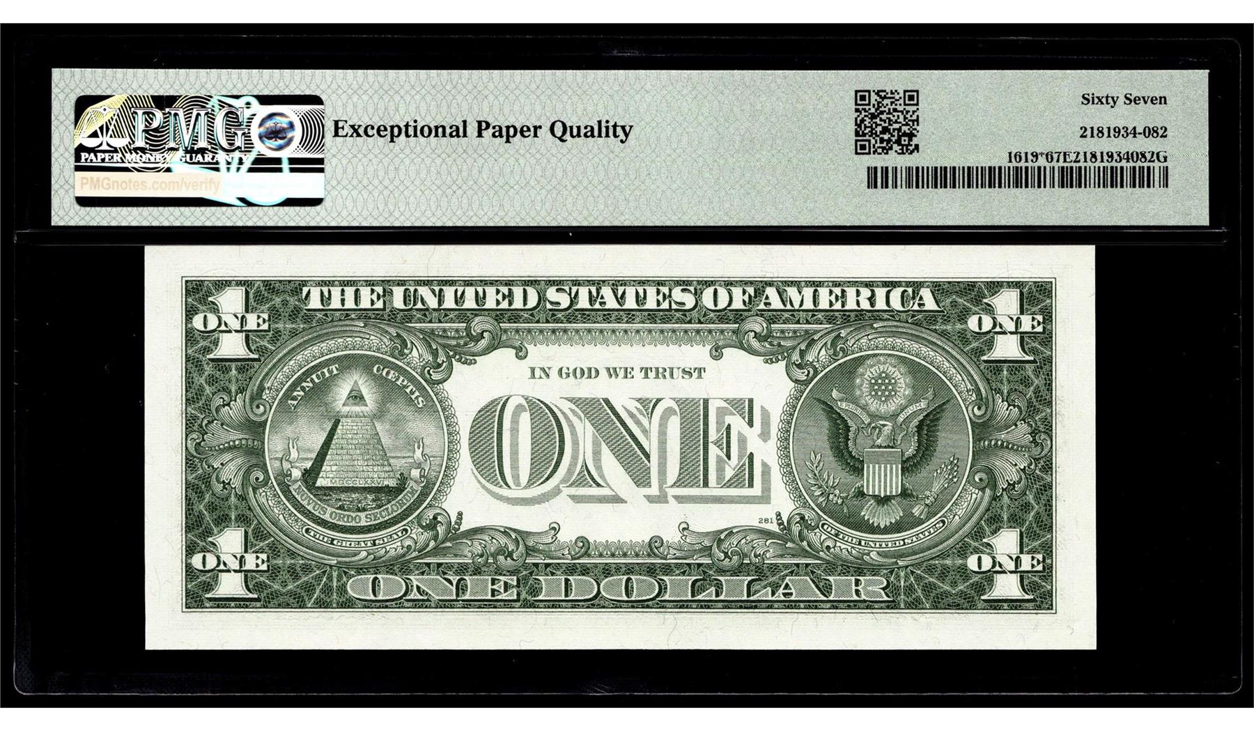 One 1957 $1 Silver Certificate Star Note Fr.1619* PMG Superb Gem Uncirculated 67EPQ. PMG Certified.