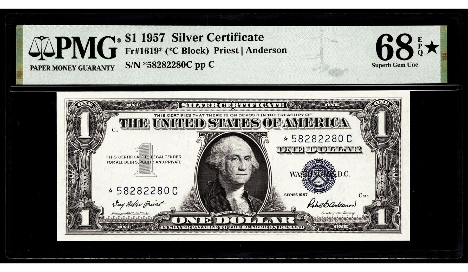 1957 $1 Silver Certificate Star Note Fr.1619* PMG Superb Gem Uncirculated 68EPQ* STAR