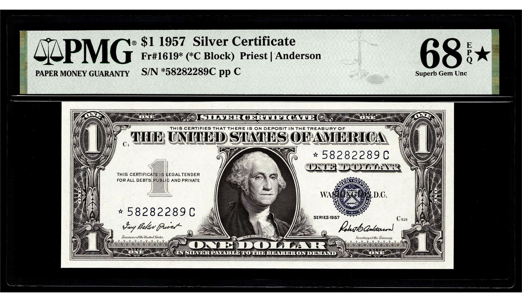 1957 $1 Silver Certificate Star Note Fr.1619* PMG Superb Gem Uncirculated 68EPQ* STAR