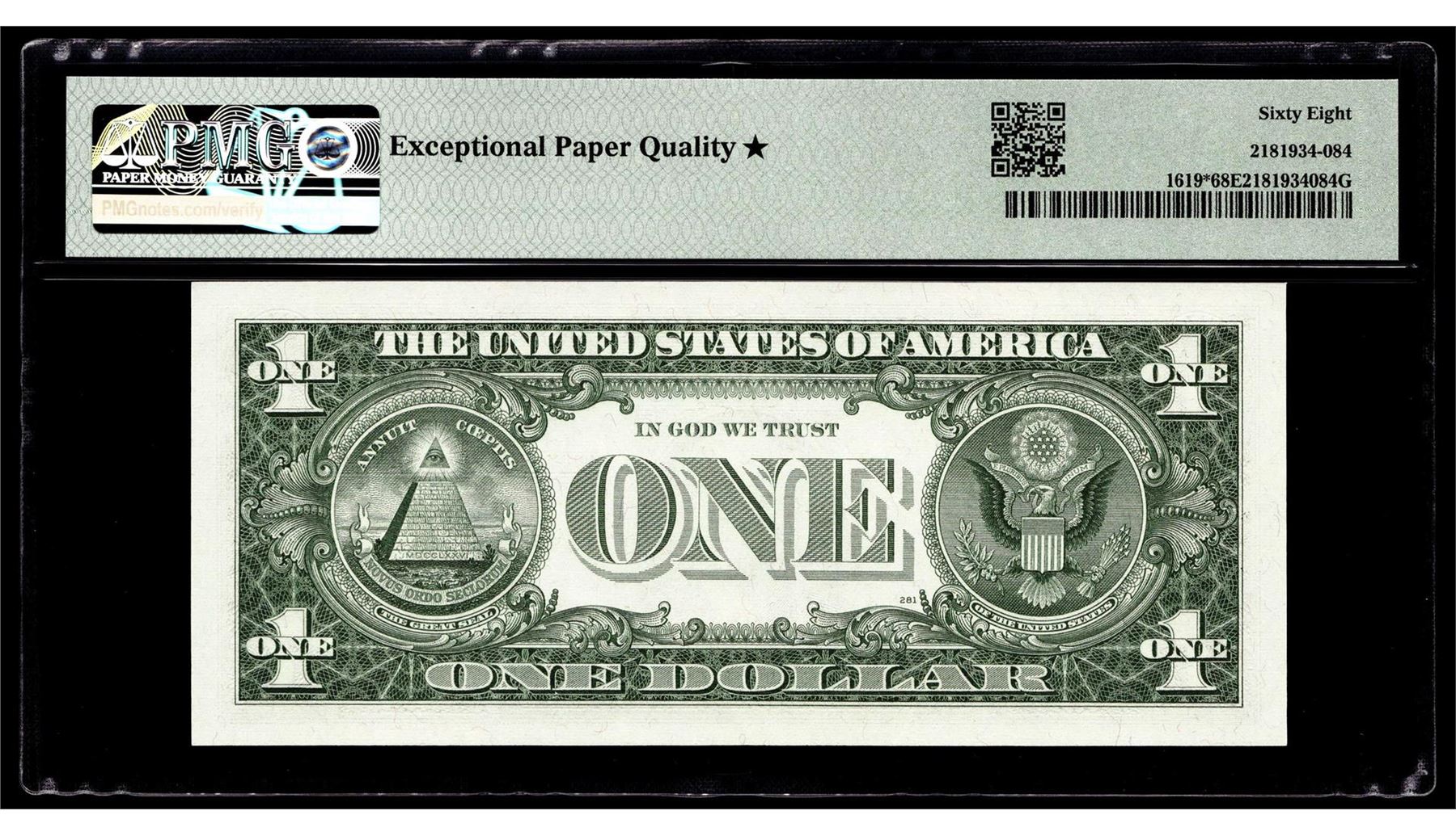 One 1957 $1 Silver Certificate Star Note Fr.1619* PMG Superb Gem Uncirculated 68EPQ* STAR. PMG Certified.