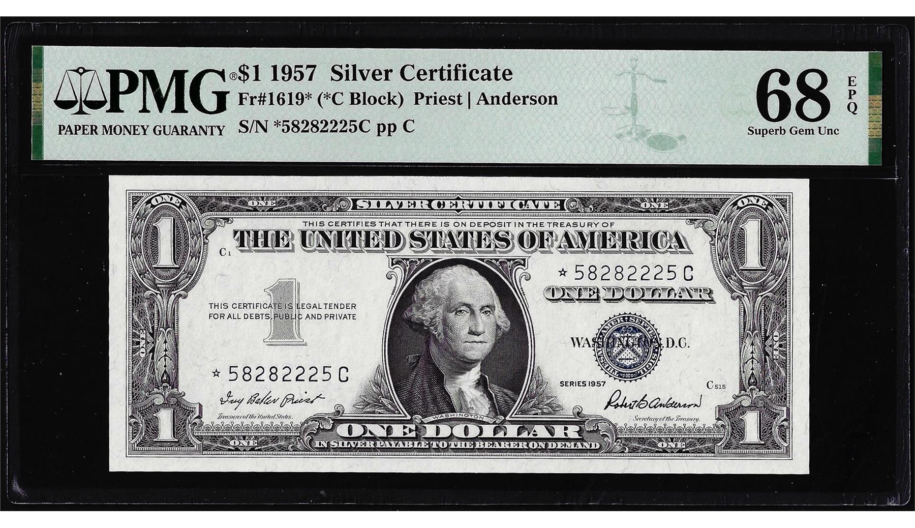 1957 $1 Silver Certificate Star Note Fr.1619* PMG Superb Gem Uncirculated 68EPQ