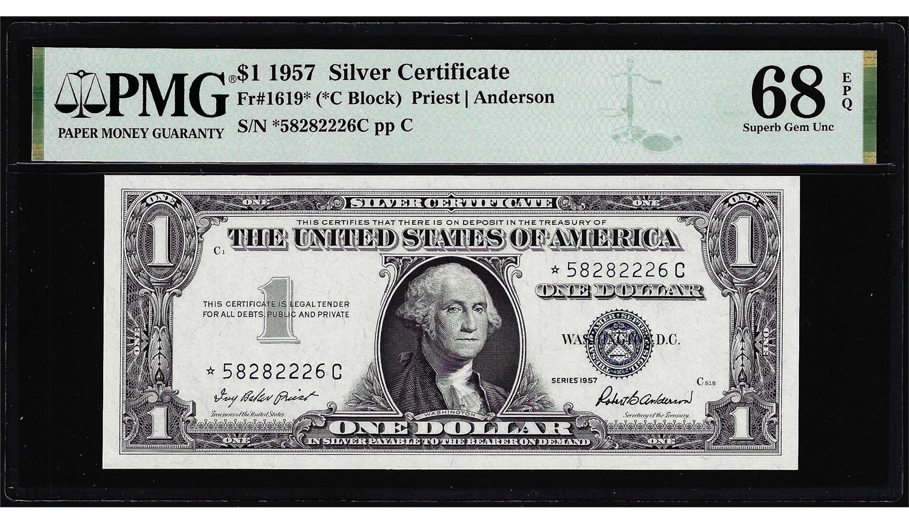 1957 $1 Silver Certificate Star Note Fr.1619* PMG Superb Gem Uncirculated 68EPQ