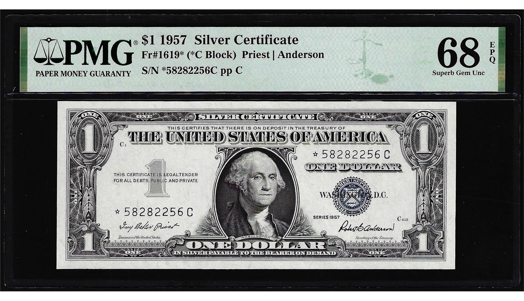1957 $1 Silver Certificate Star Note Fr.1619* PMG Superb Gem Uncirculated 68EPQ