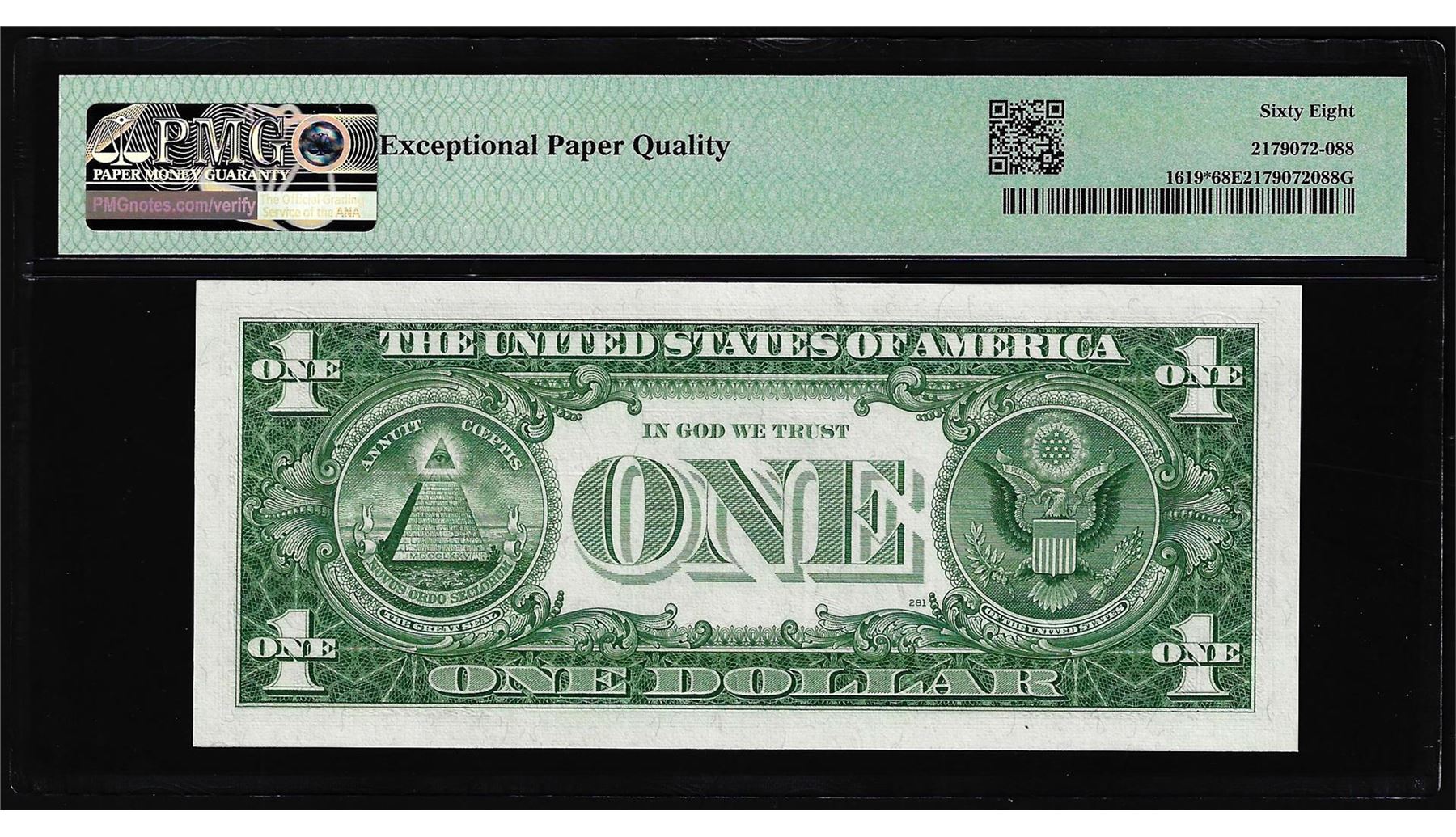One 1957 $1 Silver Certificate Star Note Fr.1619* PMG Superb Gem Uncirculated 68EPQ. PMG Certified.