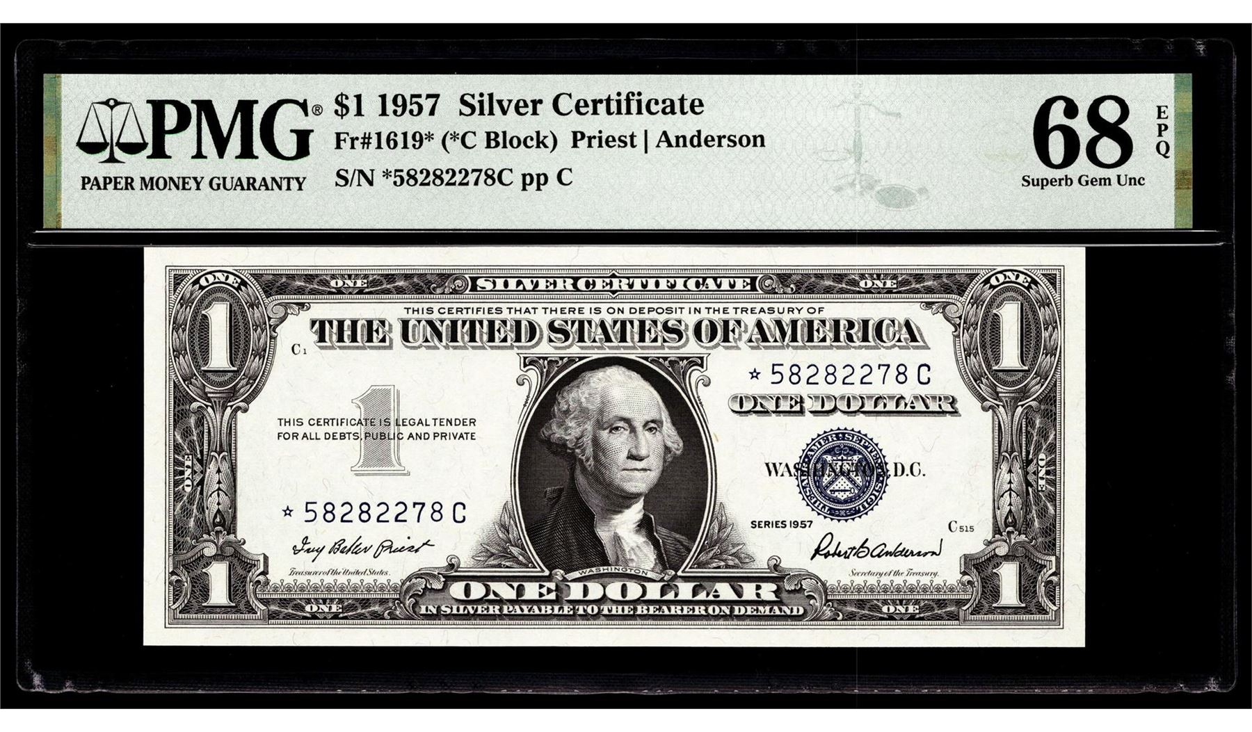 1957 $1 Silver Certificate Star Note Fr.1619* PMG Superb Gem Uncirculated 68EPQ
