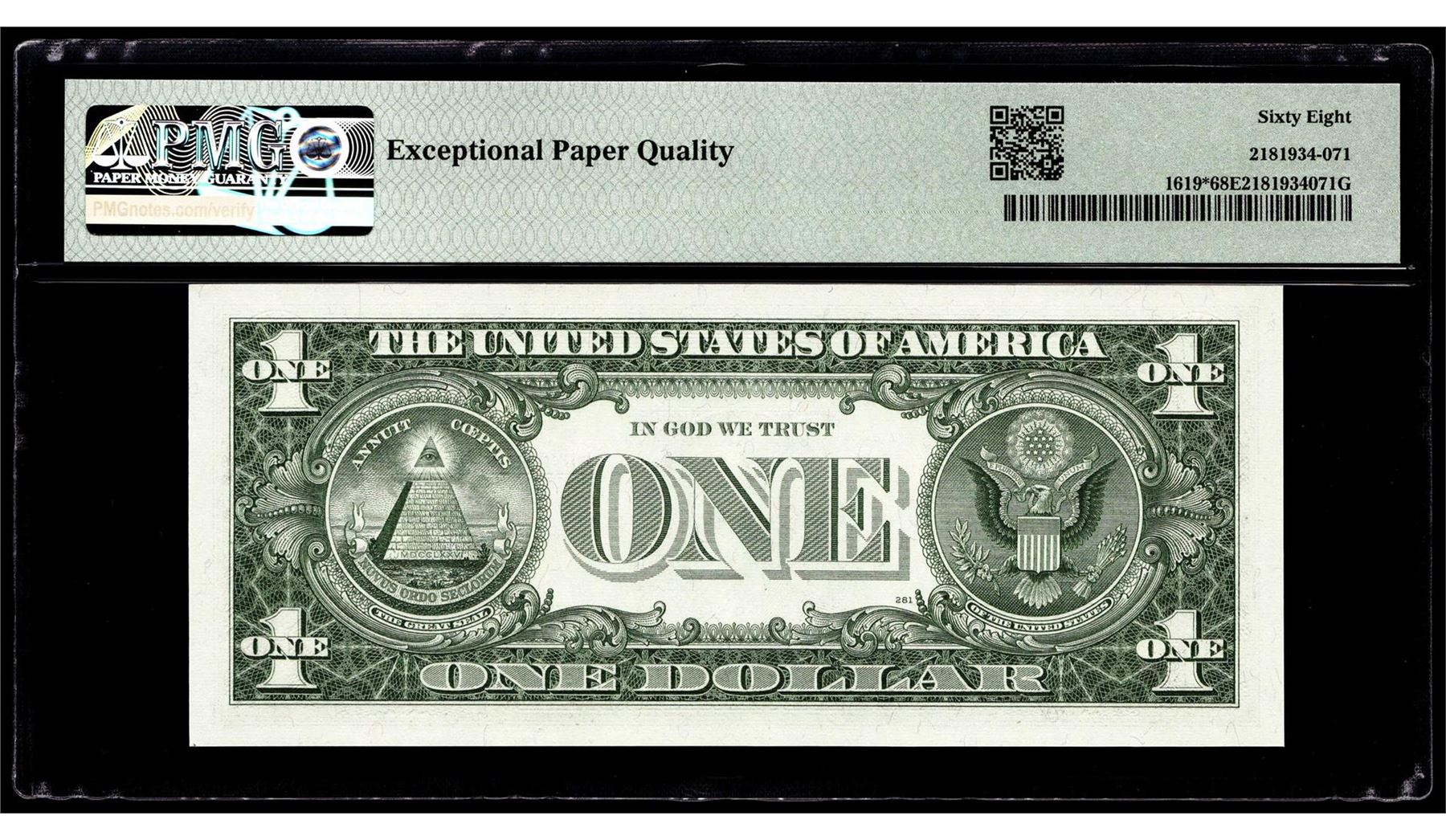 One 1957 $1 Silver Certificate Star Note Fr.1619* PMG Superb Gem Uncirculated 68EPQ. PMG Certified.