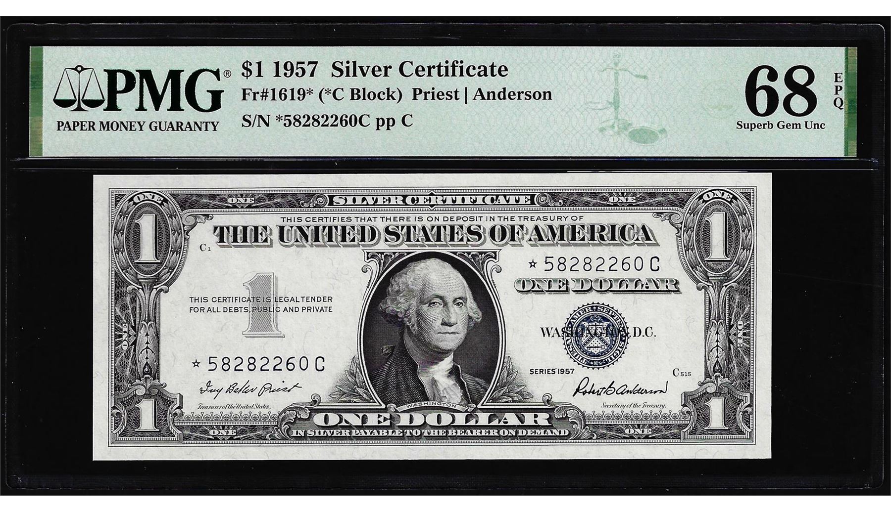 1957 $1 Silver Certificate Star Note Fr.1619* PMG Superb Gem Uncirculated 68EPQ