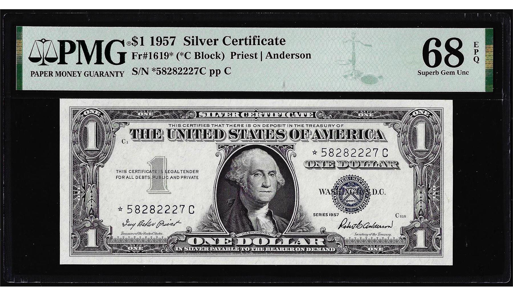 1957 $1 Silver Certificate Star Note Fr.1619* PMG Superb Gem Uncirculated 68EPQ