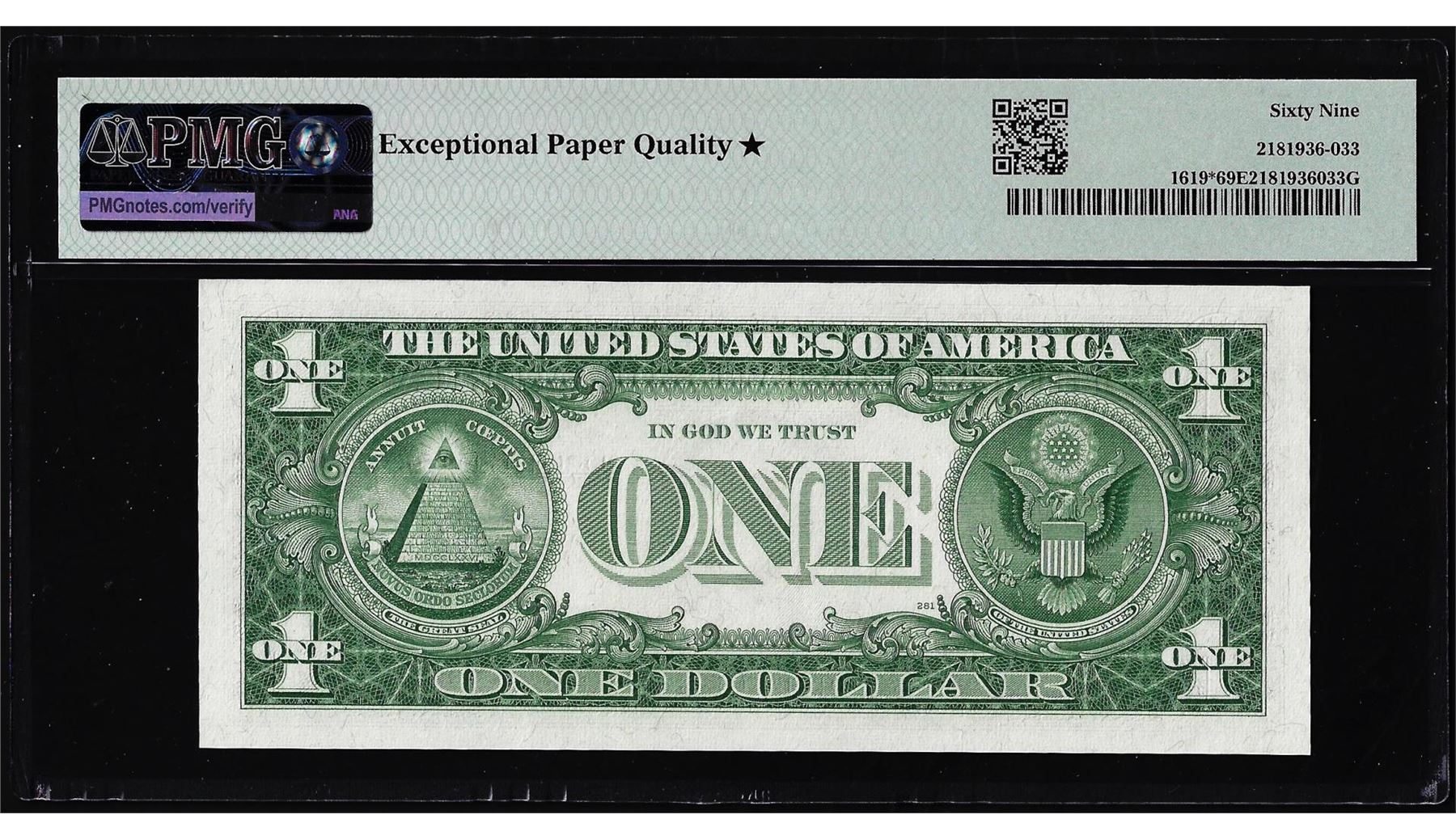 One 1957 $1 Silver Certificate Star Note Fr.1619* PMG Superb Gem Uncirculated 69EPQ STAR. PMG Certified.
