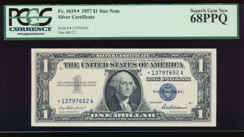 One 1957 $1 Silver Certificate Star Note PCGS 68PPQ.