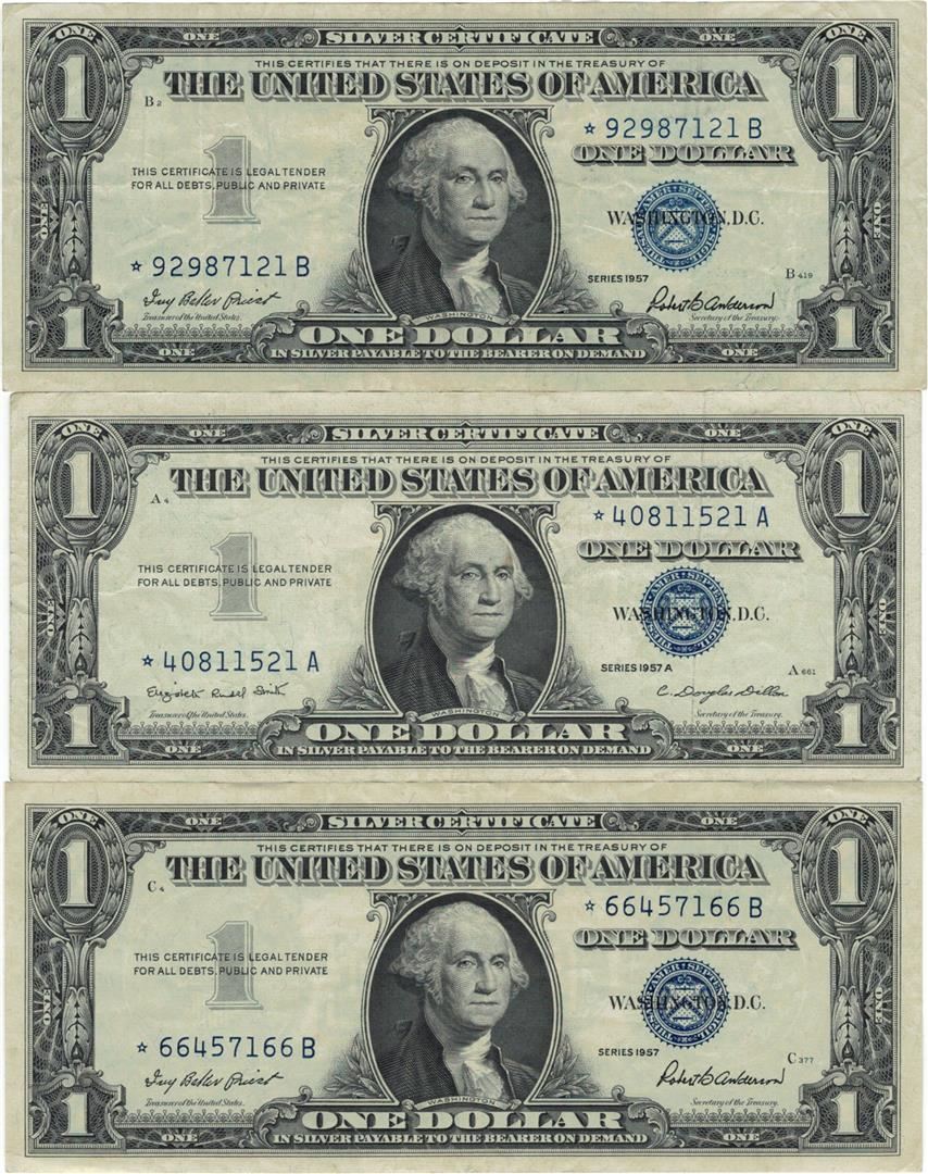 1957 $1 Star Note Silver Certificate Currency Lot of 10.
