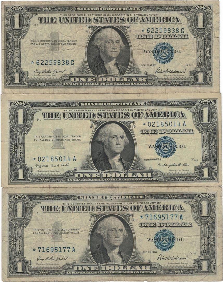 1957 $1 Star Note Silver Certificate Currency Lot of 3.