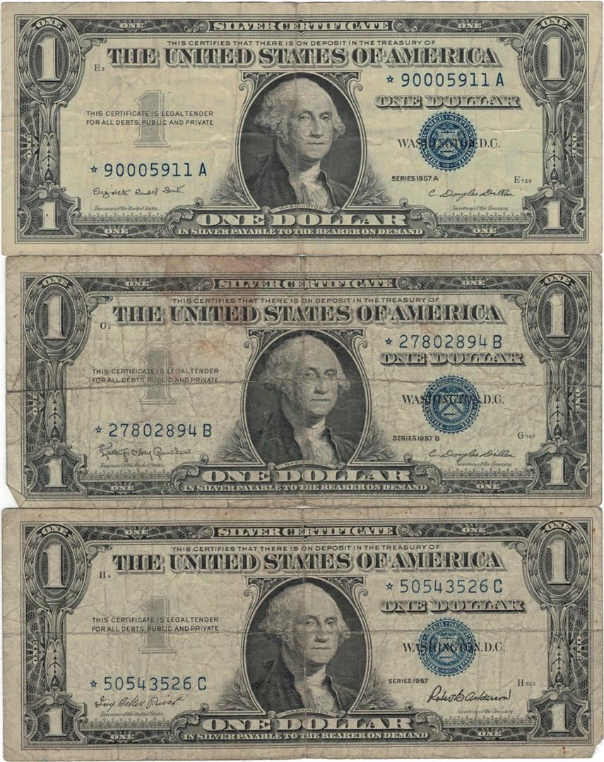 1957 $1 Star Note Silver Certificate Currency Lot of 3.