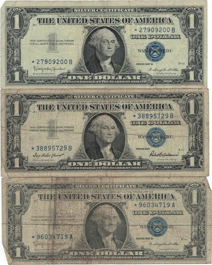 1957 $1 Star Note Silver Certificate Currency Lot of 3.