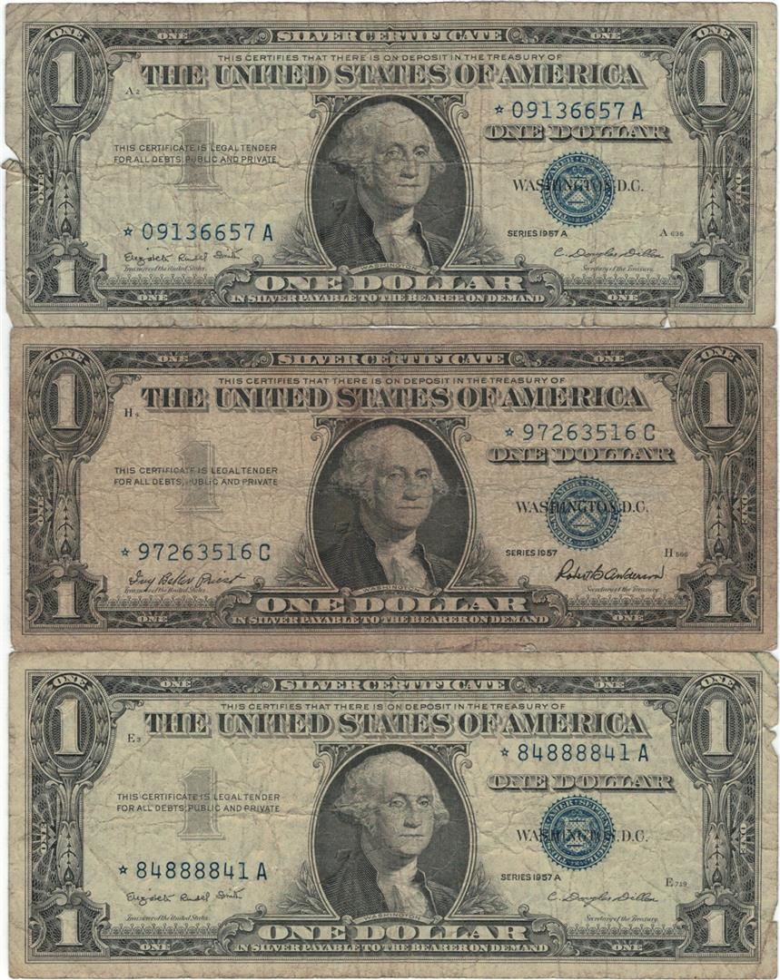 1957 $1 Star Note Silver Certificate Currency Lot of 3.