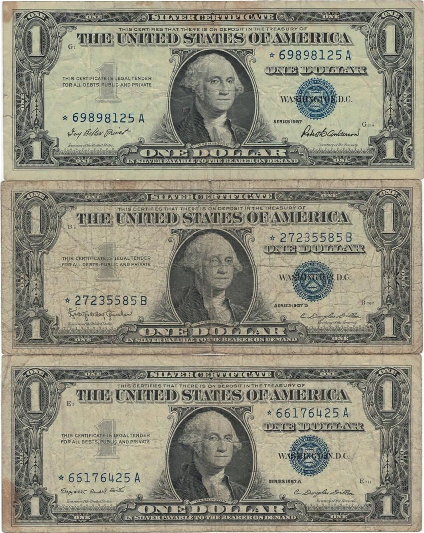 1957 $1 Star Note Silver Certificate Currency Lot of 3.