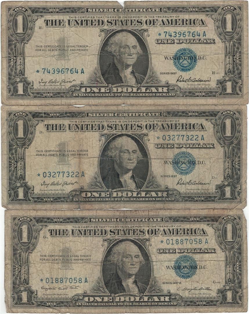 1957 $1 Star Note Silver Certificate Currency Lot of 3.