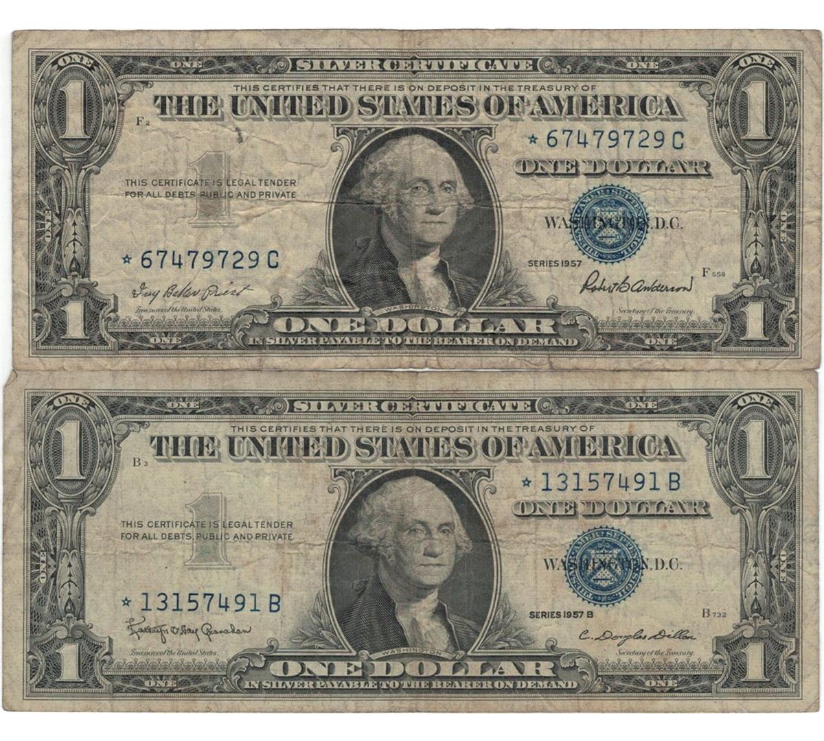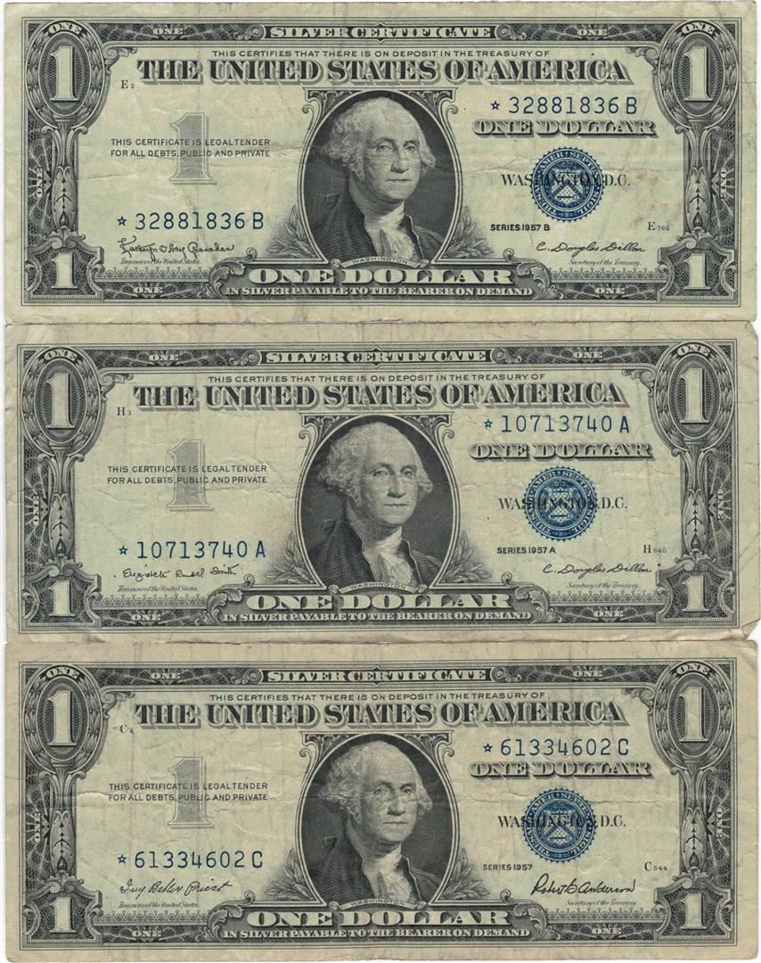 1957 $1 Star Note Silver Certificate Currency Lot of 5.