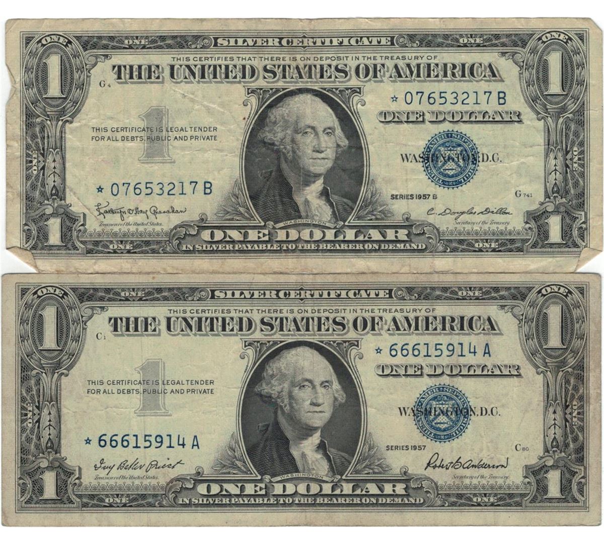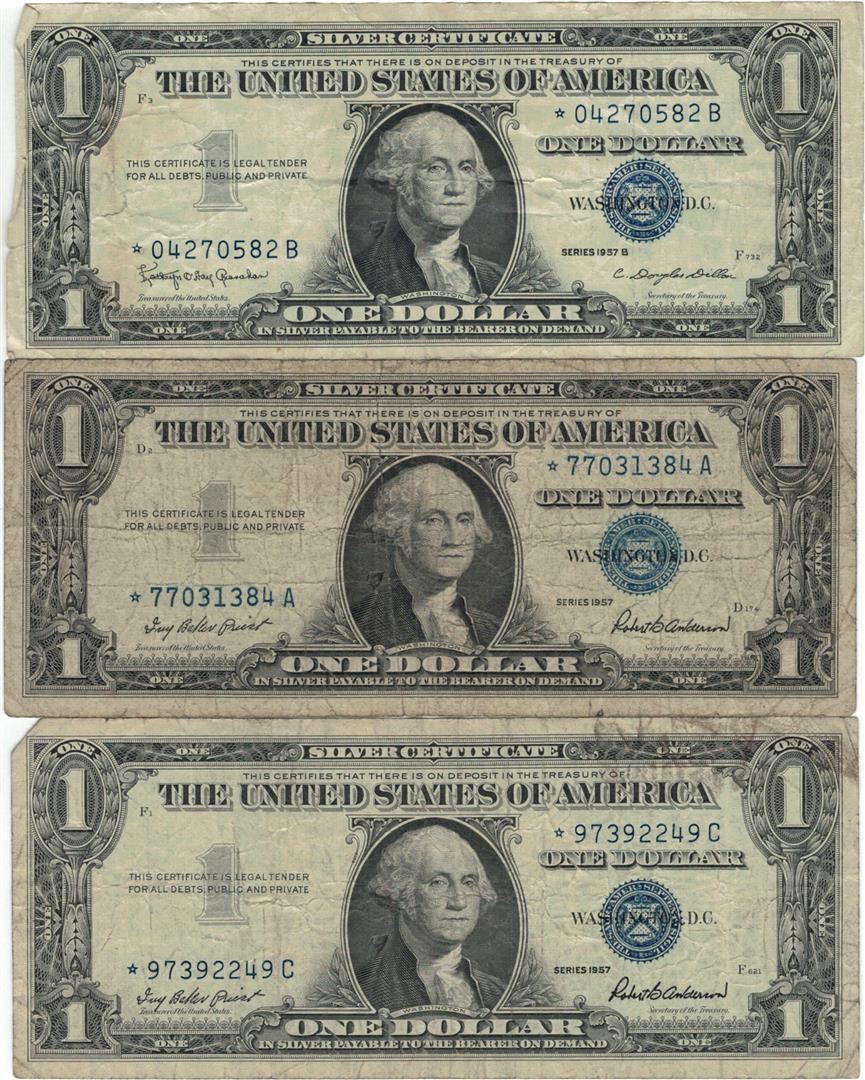 1957 $1 Star Note Silver Certificate Currency Lot of 5.