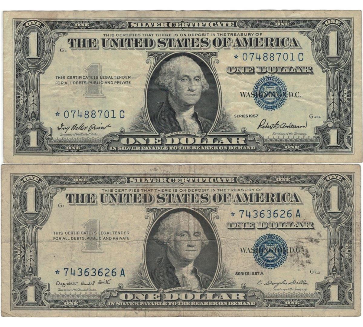 1957 $1 Star Note Silver Certificate Currency Lot of 5.