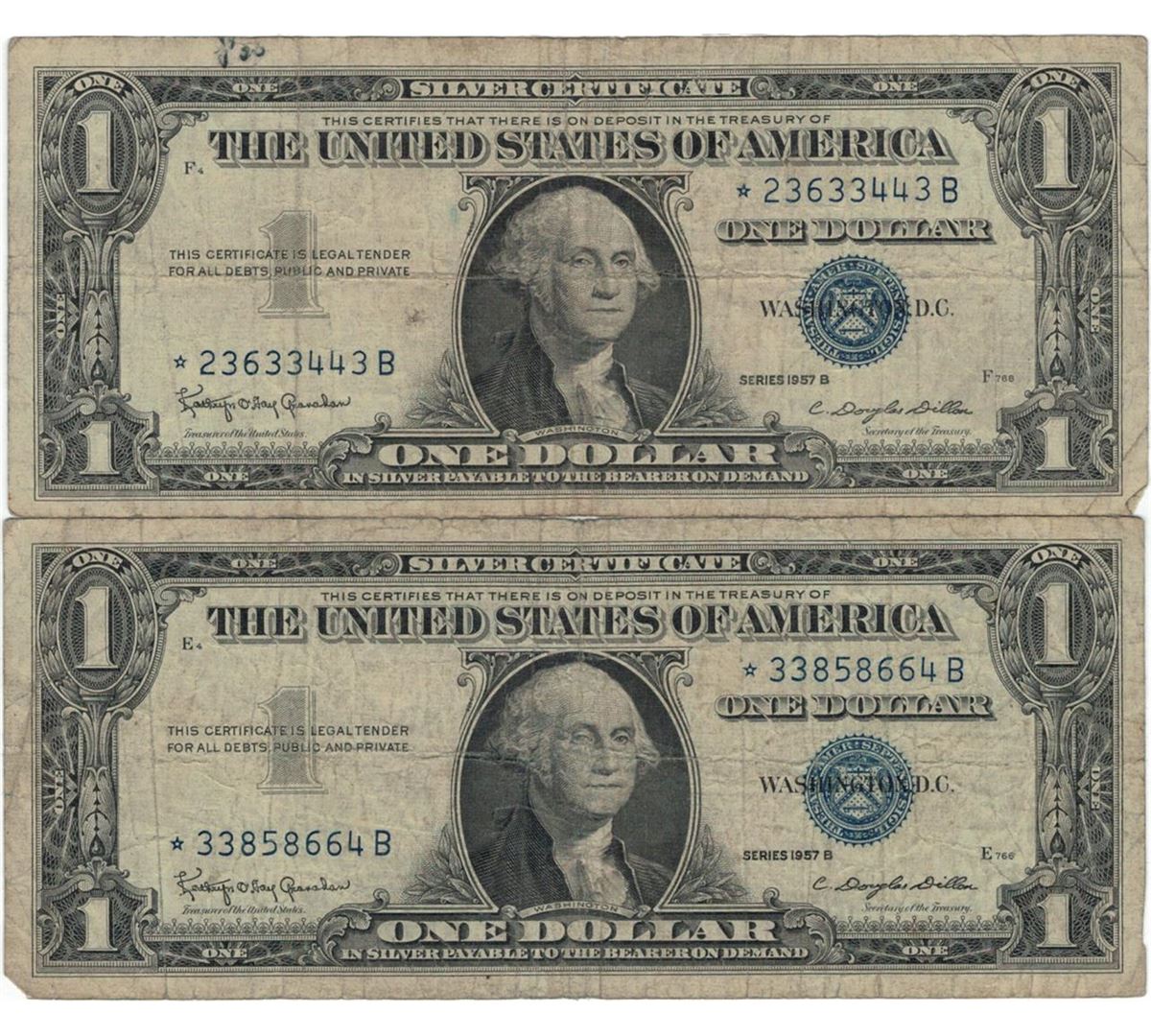 1957 $1 Star Note Silver Certificate Currency Lot of 5.