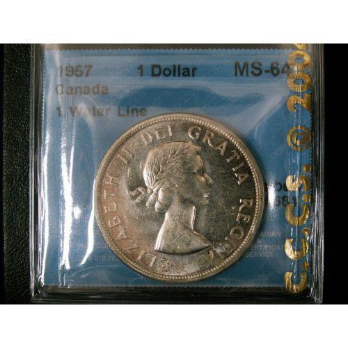 1957 1 Water line variety CCCS graded MS-64, fully brilliant and lustrous. A scarce variety