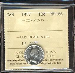 1957 10¢ ICCS MS66. Gem example, Top 5.