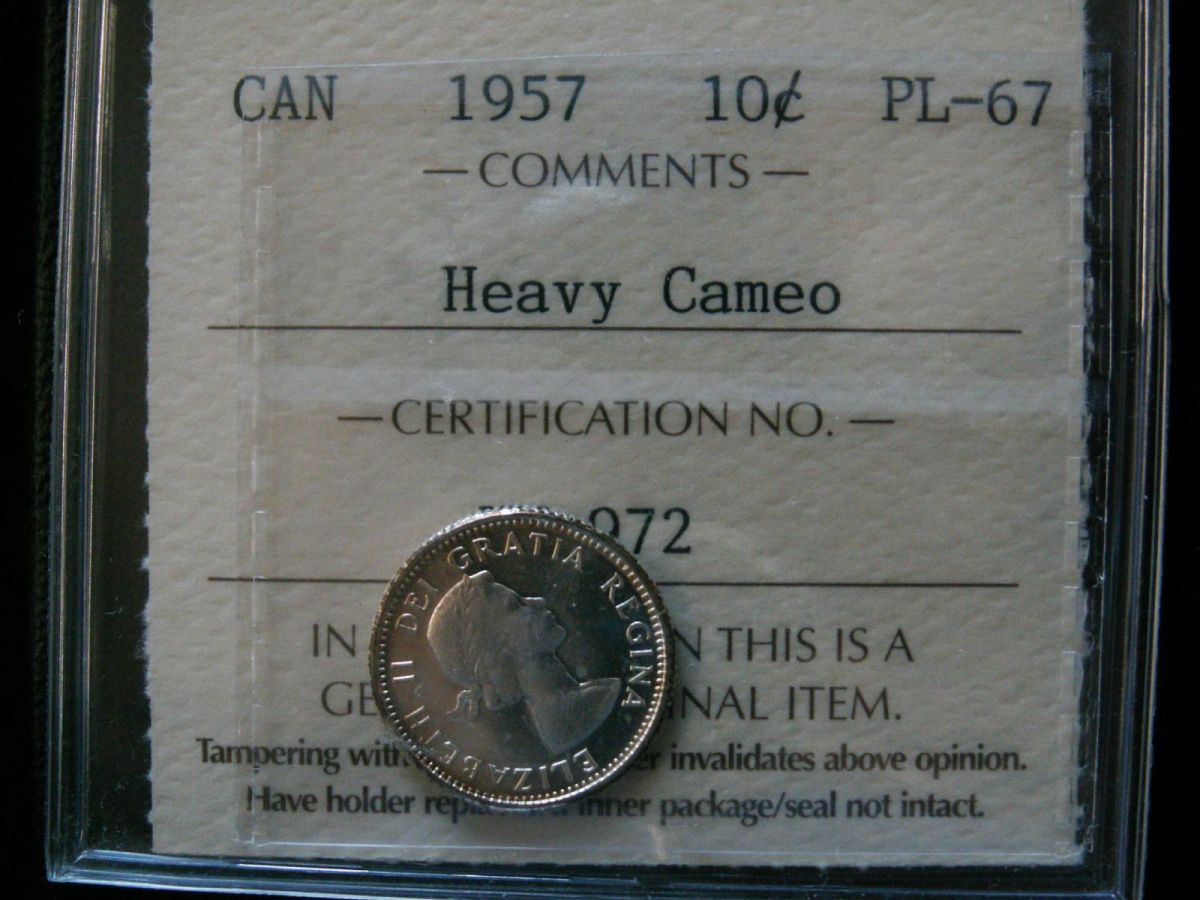 1957 10¢ ICCS PL67 Heavy Cameo. Solo highest graded'