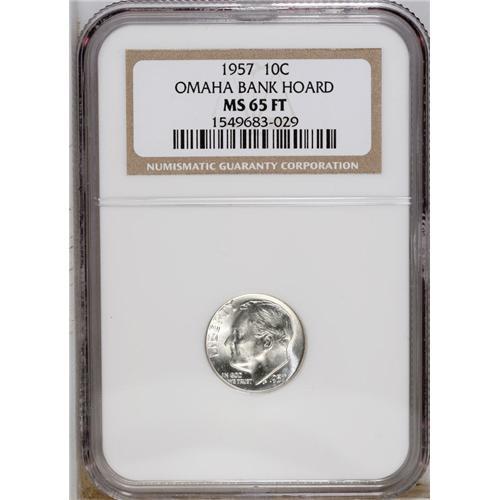 1957 10C MS65 Full Bands NGC. Ex:Omaha Bank Hoard.