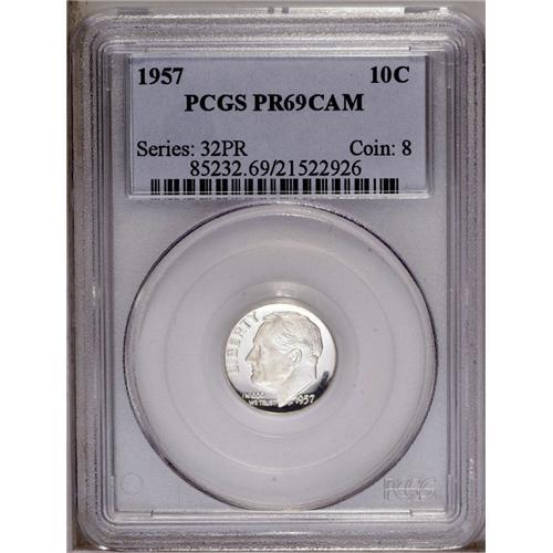 1957 10C PR69 Cameo PCGS. Brilliant except for a few f 1957[10C] PR69 Cameo PCGS.