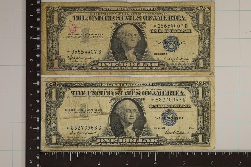 BLUE SEALS, ONE HAS INK ON THE OBVERSE