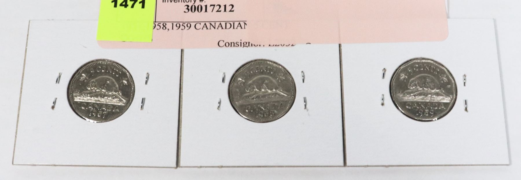 1957,1958,1959 CANADIAN 5 CENT COINS