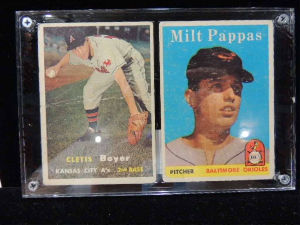 CLETIS BOYER #121 & MILT PAPPAS #457 BASEBALL PLAYER CARDS. BASEBALL TRADING CARDS. VINTAGE CARDS. AS SHOWN. SEE PHOTO FOR MORE DETAILS.