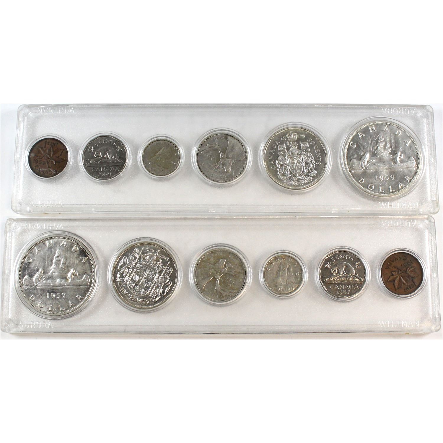 1957 & 1959 Canada Year Sets in Acrylic Holders. 2pcs.