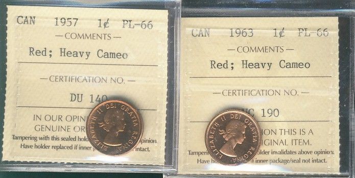 1957 & 1963 1¢ ICCS PL66 Heavy Cameo. Lot of 2 coins.