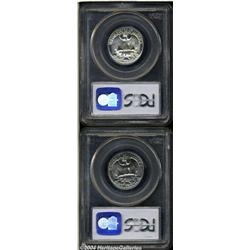 <B>1957<25C> PR67 Deep Cameo PCGS,</B></I> brilliant with exceptional contrast and a <B>1965 SMS MS66 Cameo PCGS,</B></I> delightful Cameo features. 2 Coins <BR><BR><B>Important notice:</B> Heritage usually auctions material at the rate of 200-250 lots per hour. On some occasions eBay Live bid software or the Internet may not be able to keep up with the pace of the auction. We recommend placing a realistic absentee bid now as insurance to avoid disappointment. Occasionally the auctioneer may eliminate or reject an eBay Live bid, and the auctioneer may also reopen a lot after the close of the eBay live bidding (usually because we missed an audience bid), and may reject your bid even if it shows you as the winning bidder. By bidding via eBay Live, you agree that Heritage may award the lot to another bidder at its sole discretion under the circumstances described above or any other reasonable circumstances. Since eBay bids are not shown to us until we open the lot on the floor, we treat those bids just like floor bids. In most cases the floor responds before the eBay bid is presented to us, due to Internet lag time, so for consistency we have made it a policy that floor bids are always considered first over tie eBay live bids. Also please note that all Heritage lots purchased through eBay Live carry a 20% Buyer's Premium. Please make sure you read the Terms and Conditions before you bid. </span></font></tr></table></td></tr></table>