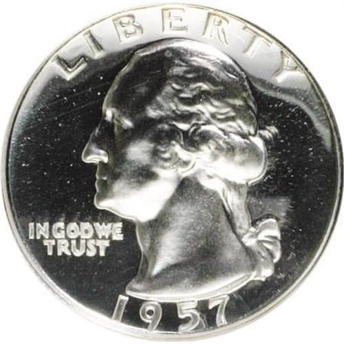<B>1957 25C PR69 NGC.</B></I> NGC Census: (96/0). PCGS Population (36/0). Mintage: 1,247,952. Numismedia Wsl. Price for NGC/PCGS coin in PR69: $50. (#5989)<BR><BR><B>Coin Engraver:</B> John Flanagan<BR><BR><b>Shipping:</b> Coins & Currency (<a target="_blank" href="http://www.heritageauctions.com/common/shipping.php">view shipping information</a>)