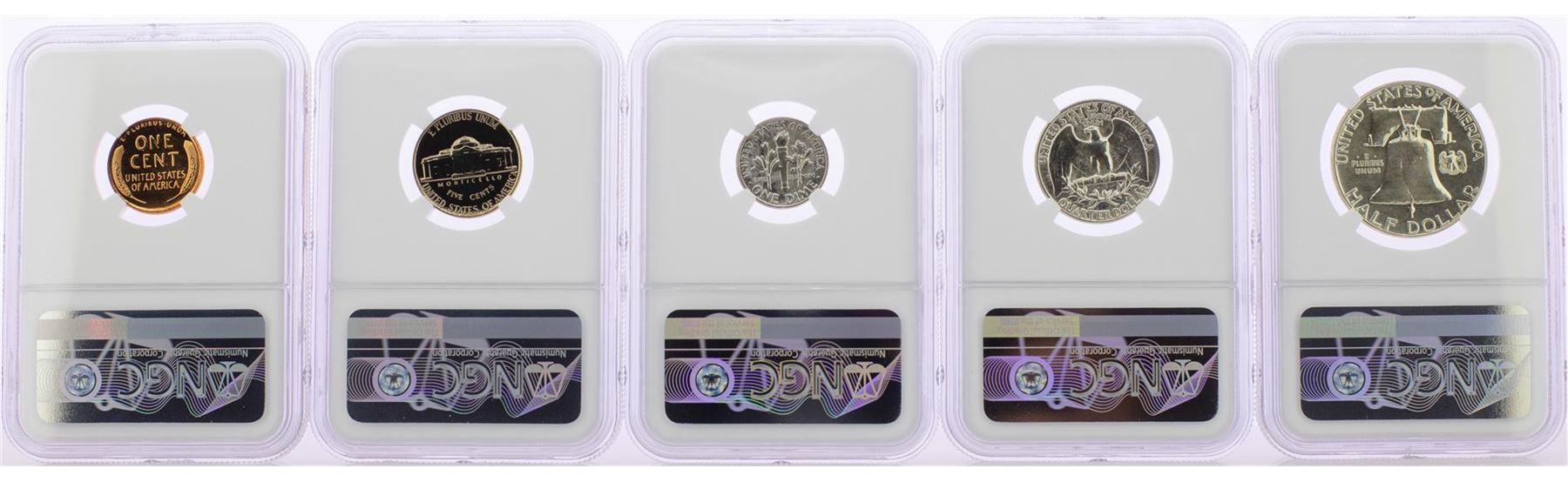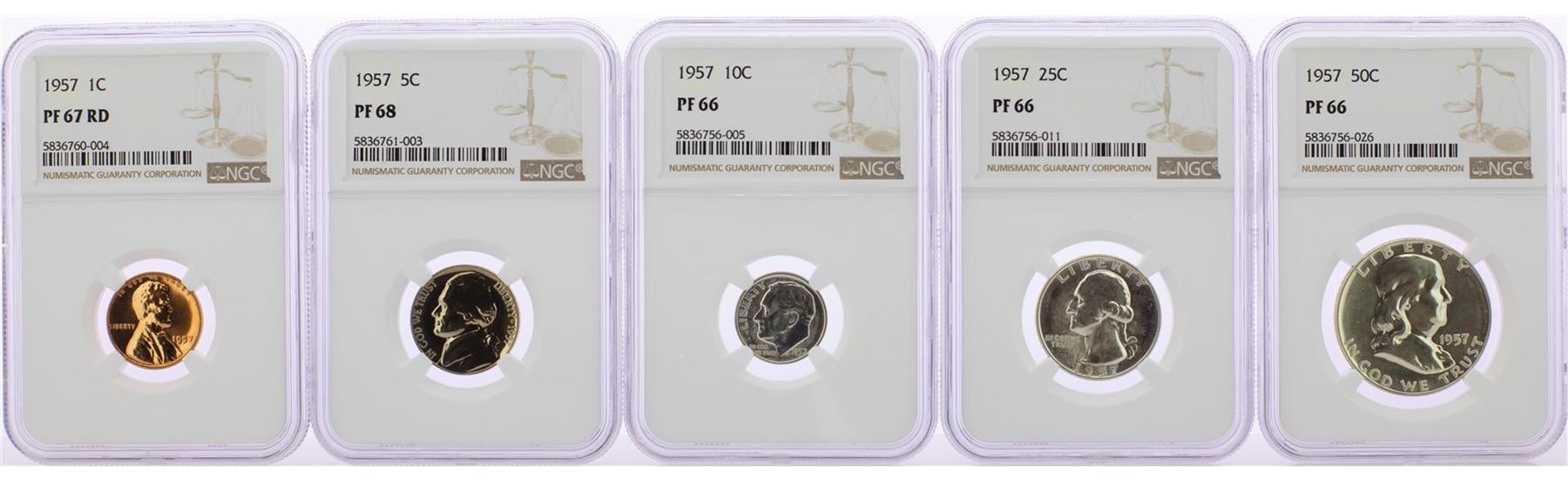 One 1957 (5) Coin Proof Set NGC Graded PF66/PF67RD/PF68. NGC Certified.