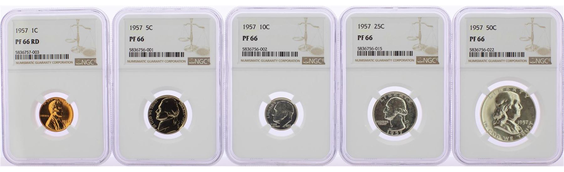 One 1957 (5) Coin Proof Set NGC Graded PF66. NGC Certified.
