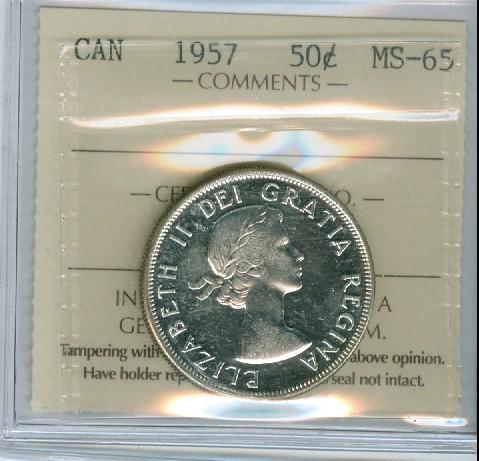1957 50¢ ICCS MS65. A better Elizabethan issue in this grade.