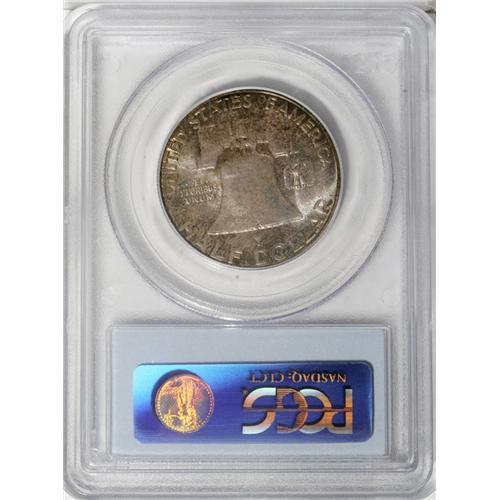 1957 50C MS66 PCGS. A dense layer of purple, forest-gr