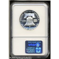 <B>1957 50C PR67 Ultra Cameo NGC.</B></I> The Liberty Bell has outstanding frost, and the obverse device and legends also exhibit strong white on black contrast. An occasional tiny fleck of gold color visits the flawless and generally untoned fields. Population: 37 in 67, 39 finer (1/05).<BR><I>From The Mike Jacobson Collection.</B></I> Lot:8342