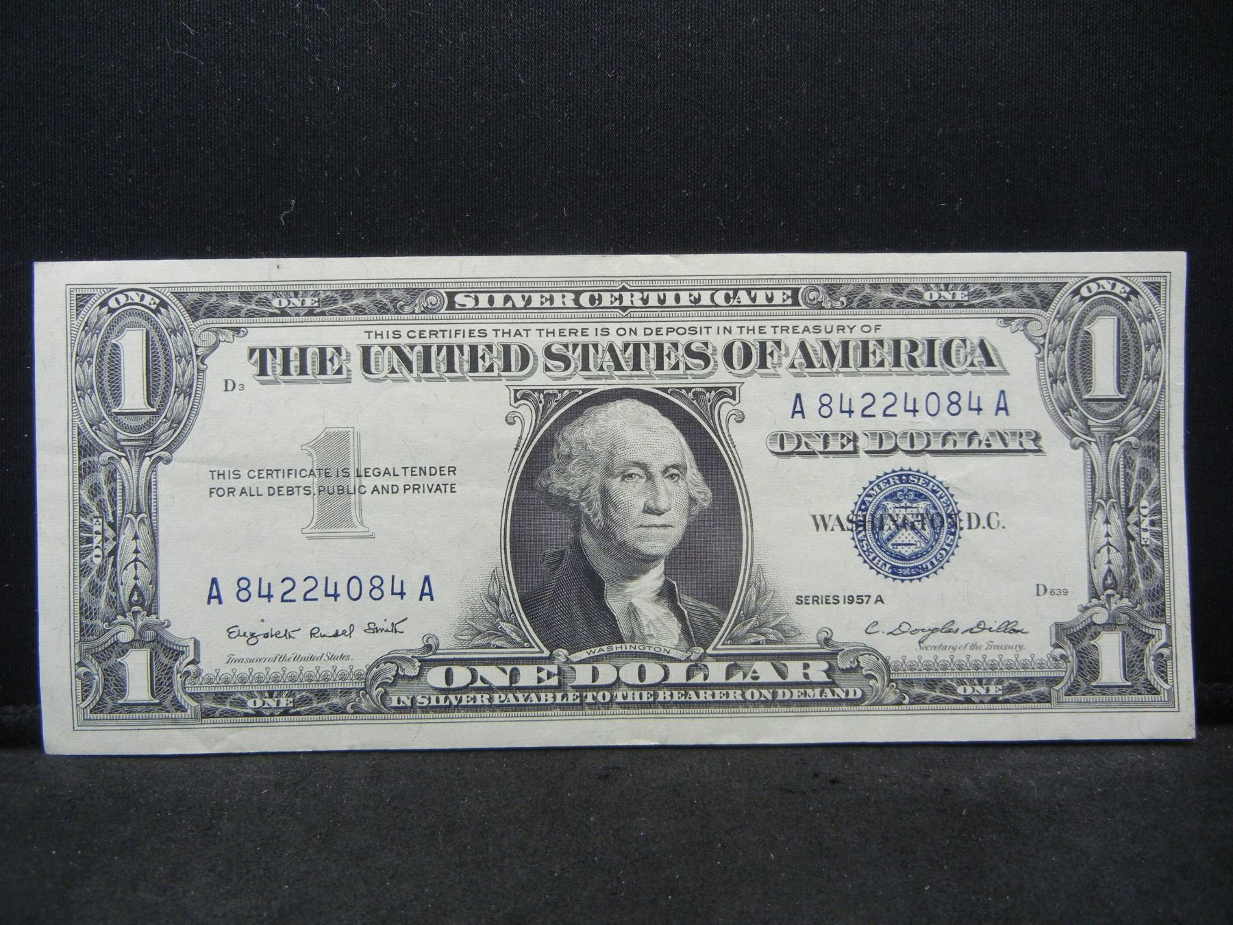 1957-A $1 Blue Seal Silver Certificate. Nice Crisp Note. Serial # A84224084A