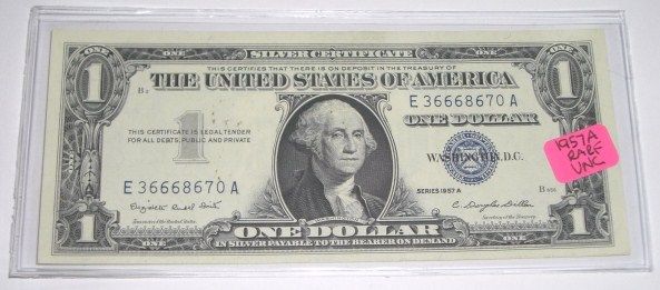 1957 A SERIES $1 SILVER CERTIFICATE SERIAL # E36668670A *EXTREMELY RARE UNC HIGH GRADE*!! ***Coin, Currency & All Items Listed in this auction - Grades, Conditions and Values are not Safe Deposit Coins LLC Responsibilty. Grades, Condition and Values are determined by Consigner(s) & Buyers ONLY