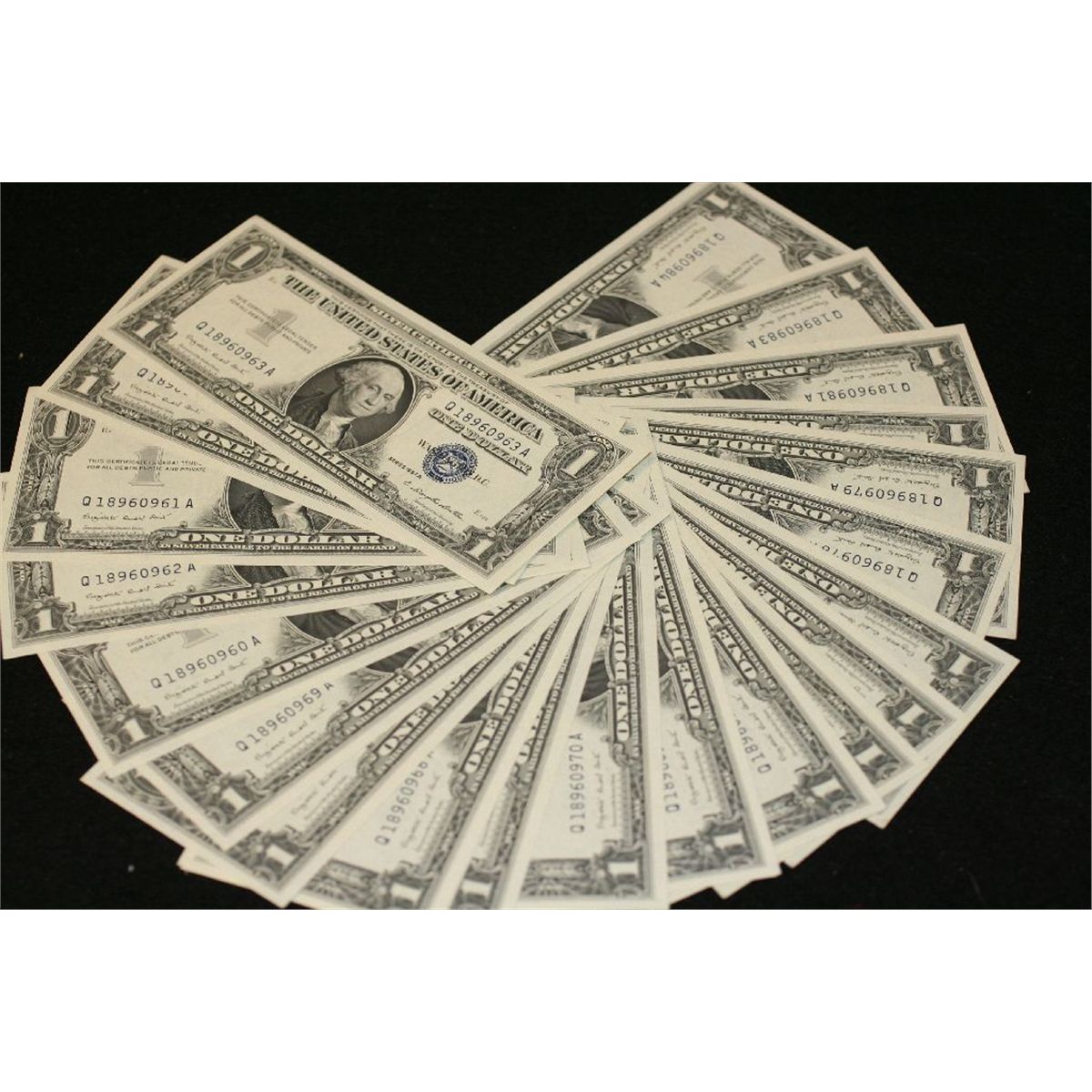1957-A US Silver Certificate $1, Blue Seal, #Q18960960A thru #Q18960984A consecutive numbers, lot of