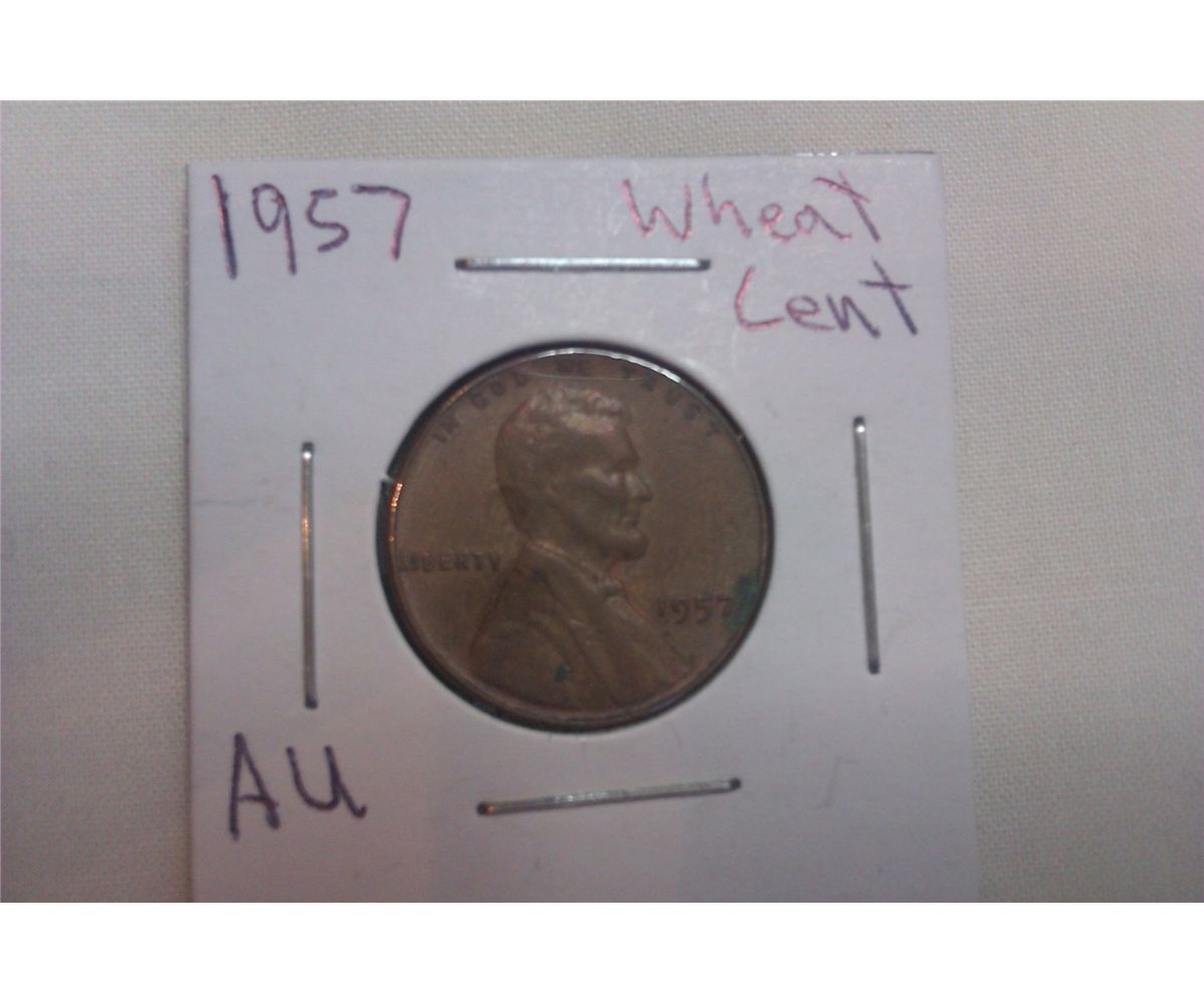 1957 AU Wheat Cent ***Coin, Currency & All Items Listed in this auction - Grades, Conditions and Values are not Safe Deposit Coins LLC Responsibilty. Grades, Condition and Values are determined by Consigner(s) & Buyers ONLY***